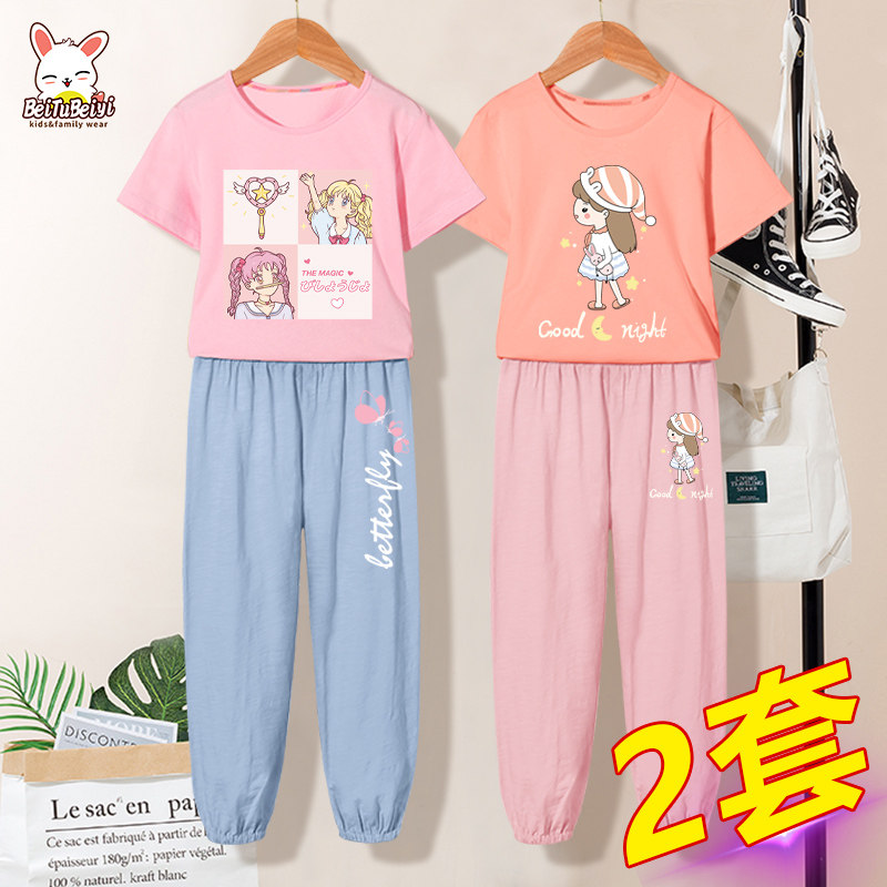 儿童睡衣女孩春夏款童装女童纯棉薄款家居服中大童夏季网红套装热门设计联盟服务商