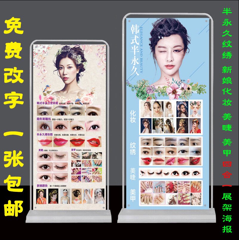 新娘化妆盘发纹绣门型展架海报设计半永久美甲美睫80*180易拉宝画热门设计联盟服务商