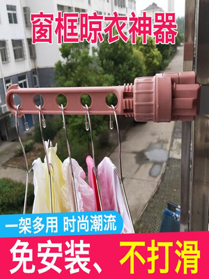 阳台晾衣神器窗外旅行便携高层室外伸缩挂置物窗台小晒鞋架。热门设计联盟服务商