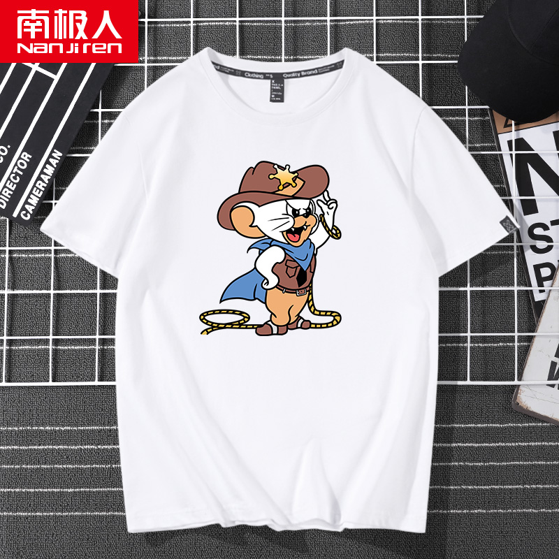 南极人2021夏季新款纯棉卡通情侣短袖t恤男士宽松半袖白色体恤衫热门设计联盟服务商