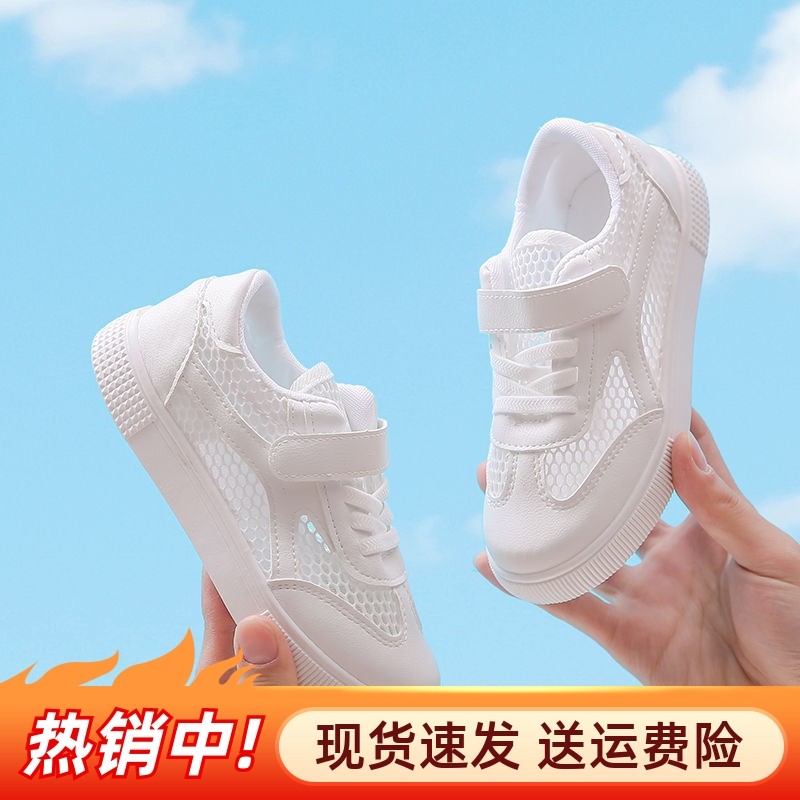 女童小白鞋儿童透气鞋子夏单网面新款女孩男童板运动休闲鞋镂空洞热门设计联盟服务商