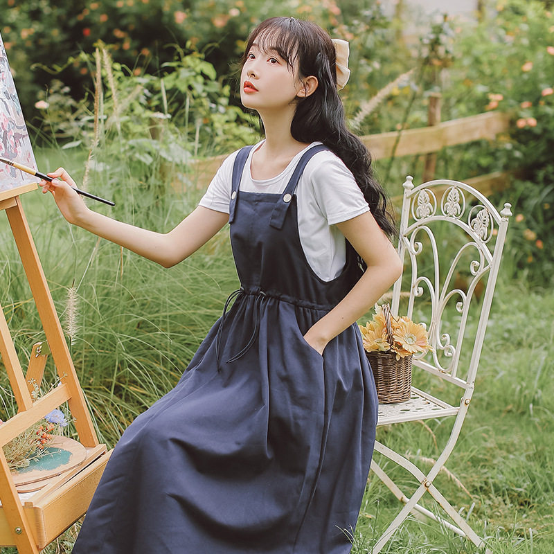 甜美减龄背带两件套女2021夏季新款小清新工装套装连衣裙8110#热门设计联盟服务商