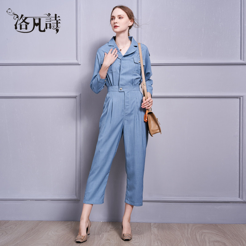洛凡诗连体套装女士工装连体裤2021秋季新款高腰显瘦休闲假两件套热门设计联盟服务商